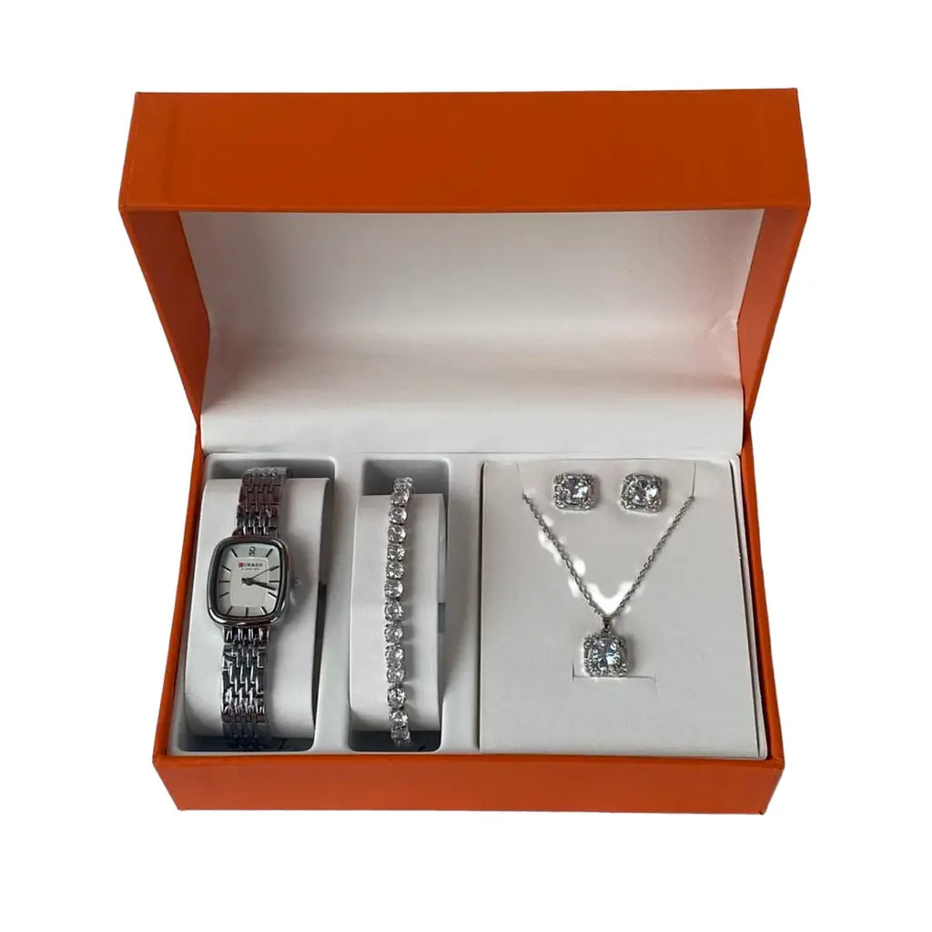 Show your love and appreciation with this exquisite pendant necklace, classy watch and bracelet. A symbol of elegance and grace, this necklace is the perfect gift for someone special. Whether celebrating a birthday, an anniversary, or just because, this shimmering piece will always remind them of your thoughtfulness.