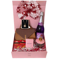 This elegant gift box includes a trendy handbag, refreshing perfume, non alcoholic wine, stylish necklace, beautiful mug and delicious chocolates - a perfect blend of style, taste and self-care. Thoughtfully curated for birthdays, appreciation gifts, Valentine or simply to remind her she deserves the best.