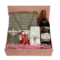 Treat her to a stylish gift box featuring a trendy handbag, non alcoholic wine, soft face towel, lip balm and glass mug. A perfect mix of self-care and style - ideal for birthdays, appreciation gifts, or just because she deserves it. Designed for the young and young at heart.
