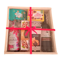 The Luxury Indulgence Gift Set features fine wine, gourmet chocolate, Shangria Don Simon, and premium chocolate and crackers—perfect for celebrating special moments with elegance and taste in mind.